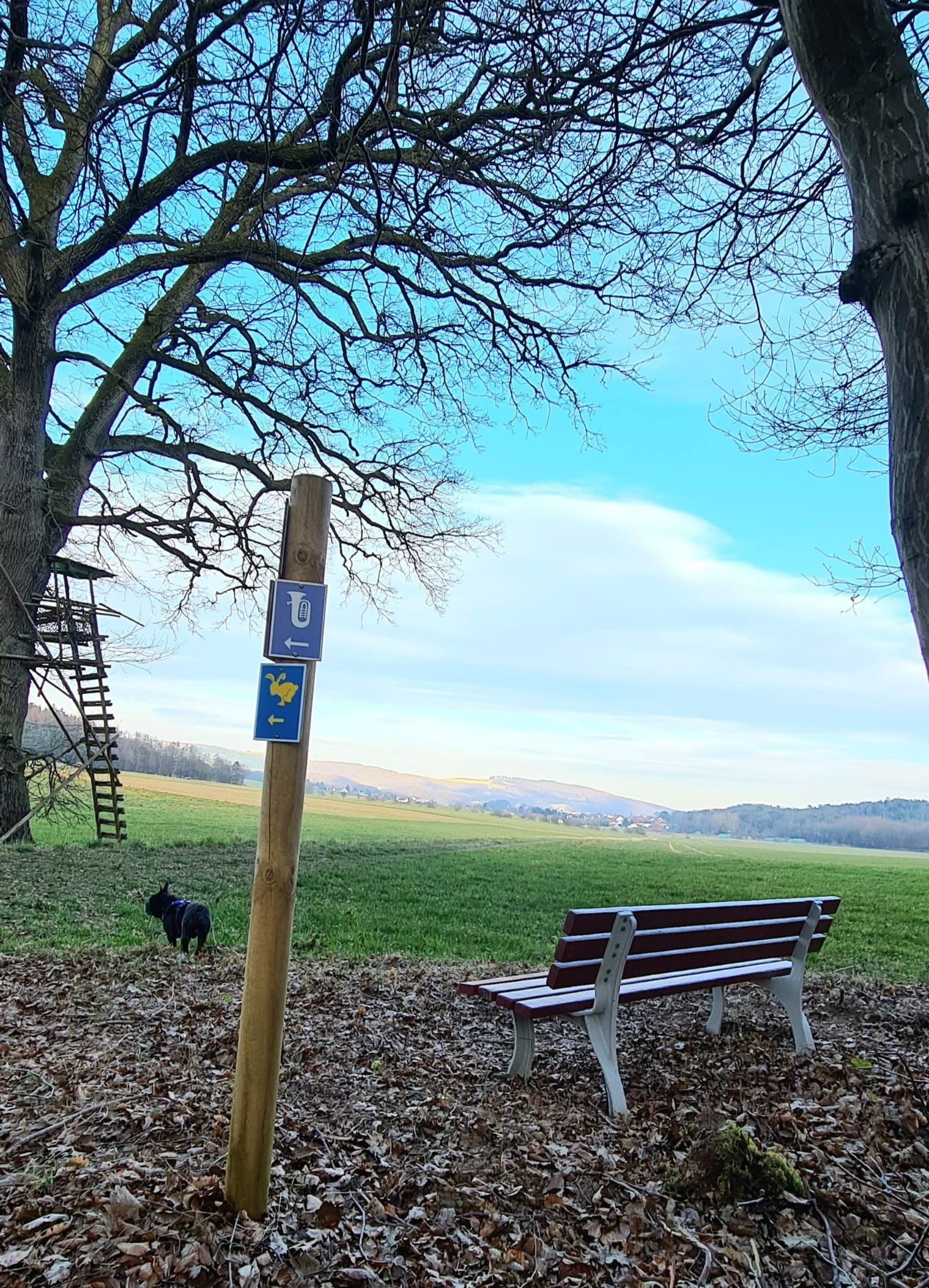 Der Weg ist gut ausgeschildert mit Muschelemblemen (weiße Muschel auf blauem Grund) und Infotafeln mit Standortbeschreibung und allerlei Wissenswertem.